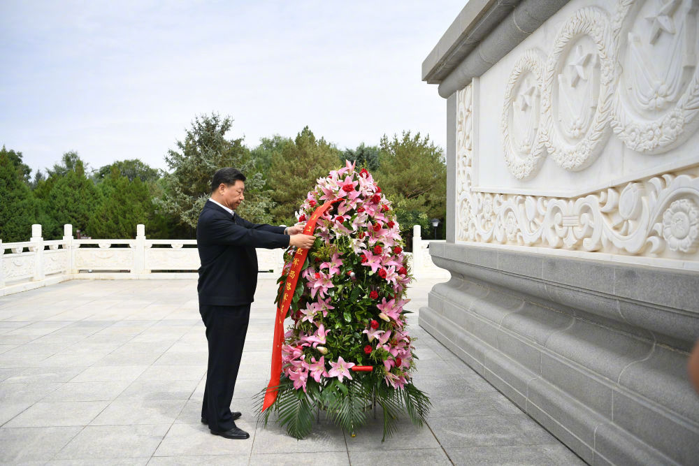 8月20日上午,习近平来到张掖市高台县,瞻仰中国工农红军西路军纪念碑和阵亡烈士公墓,向西路军革命先烈敬献花篮。