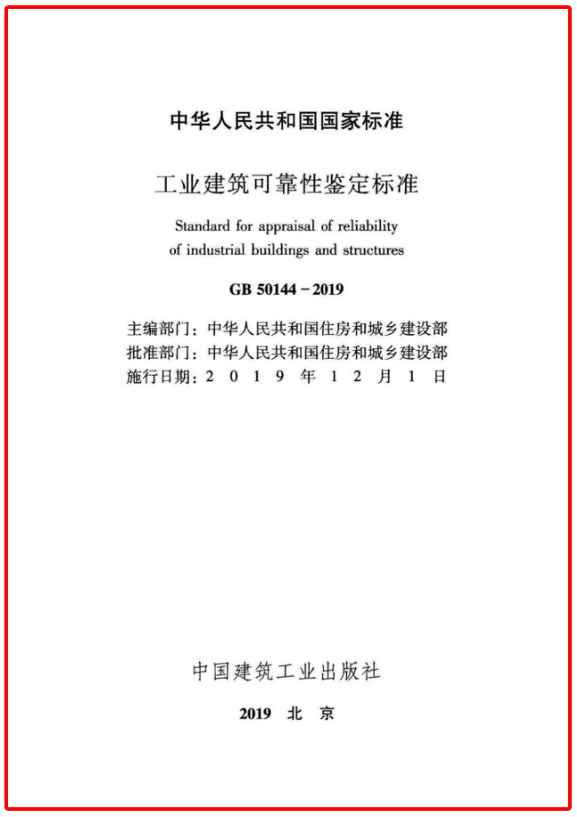 日前,由乐动在线主编的国家标准《工业建筑可靠性鉴定标准》GB50144-2019正式发布,将于2019年12月1日实施。
