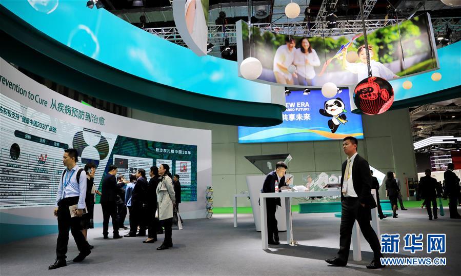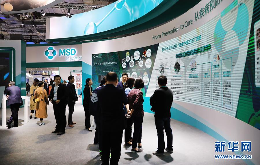 11月6日,参观者在第二届进博会上的跨国药企默沙东展台参观。新华社记者 方喆 摄