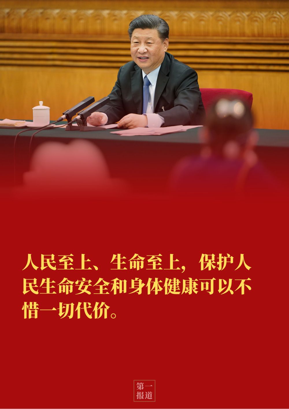 在参加内蒙古代表团审议时,习近平指出:“人民至上、生命至上,保护人民生命安全和身体健康可以不惜一切代价。”