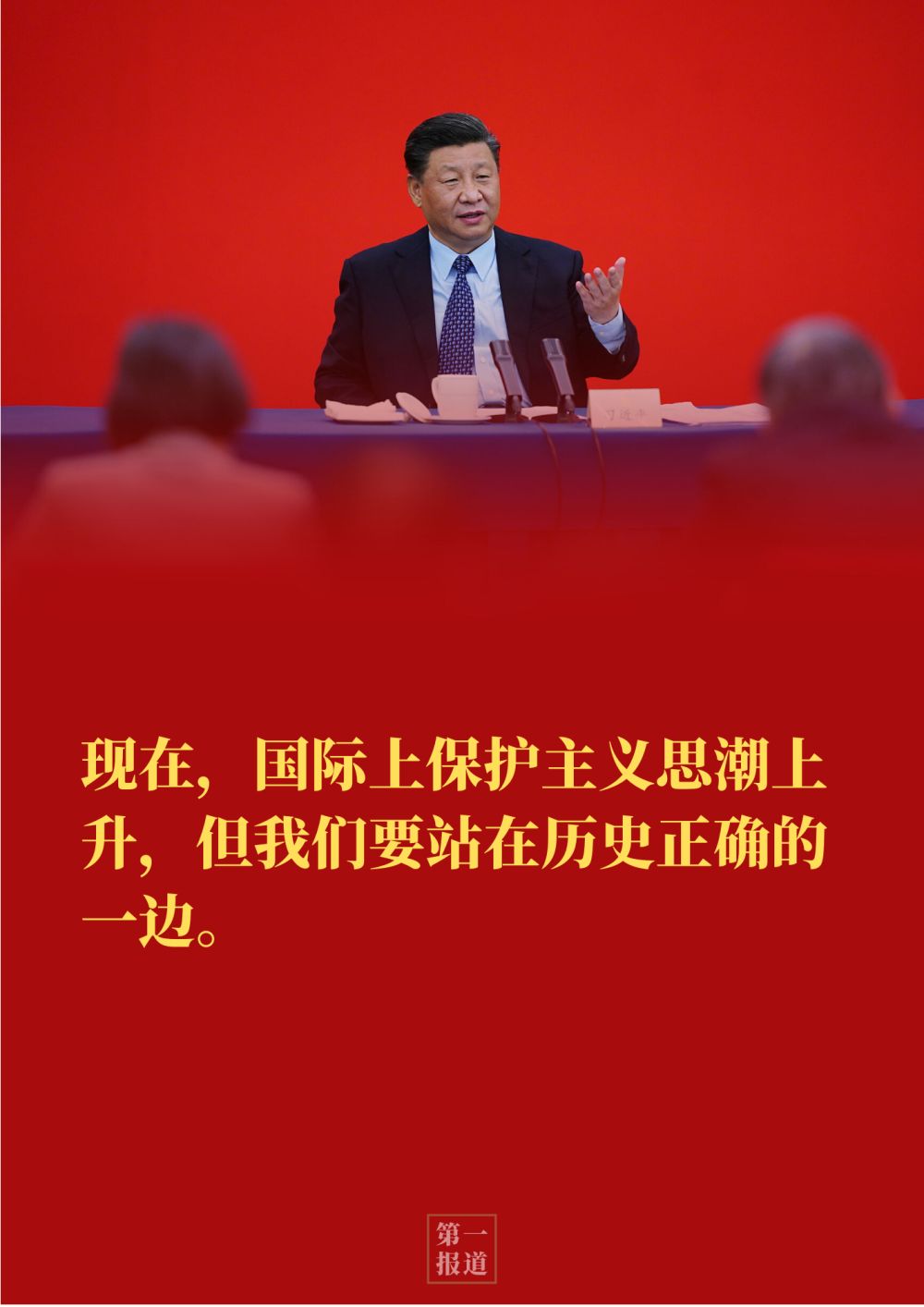 “现在,国际上保护主义思潮上升,但我们要站在历史正确的一边。”