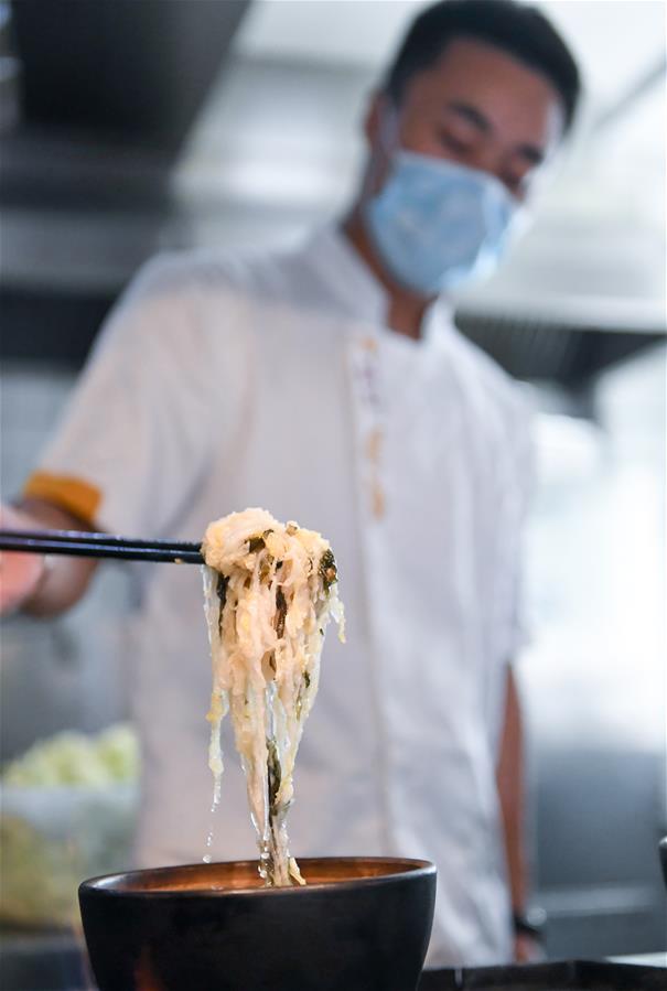 在长春市砂唐居餐馆,厨师在做小份砂锅菜(8月16日摄)。新华社发(颜麟蕴 摄)