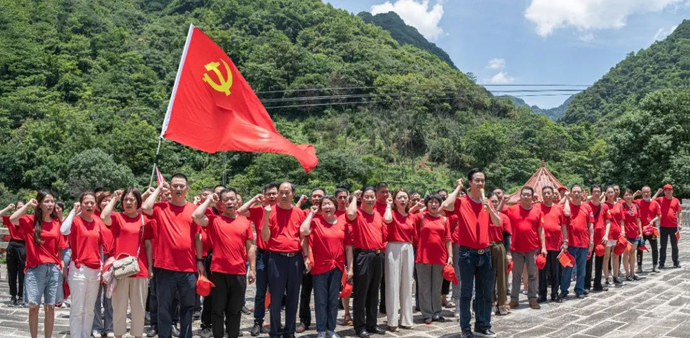 当天,与会代表们还在罗汉里爱国主义教育基地进行“红心向党永远跟党走追寻红军革命足迹”为主题的党史教育活动。罗汉里红色教育基地革命纪念碑前,支部书记、会长施忠旗领誓,大家整齐列队,重温入党誓词,接受革命精神洗礼,表达了对革命先烈的深情缅怀和继承先烈遗志、永远跟党走的坚定信念。之后大家重走红军路,体验红军挑粮小道,追寻革命足迹,缅怀革命先烈,传承不畏艰险的优良传统,更加坚定深耕建筑业,提升企业核心竞争力,开启新时代高质量发展新征程的决心。
