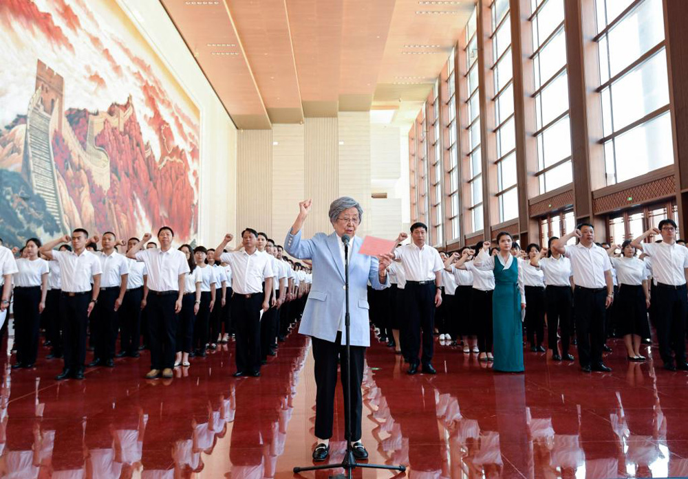 根据党中央安排,22日上午,中共中央组织部组织新党员代表在中国共产党历史展览馆举行入党宣誓活动。中央和国家机关,在京中央企业、中管金融企业和中管高校,人民解放军和武警部队,以及北京市各行各业的新党员代表,共1000余人参加。