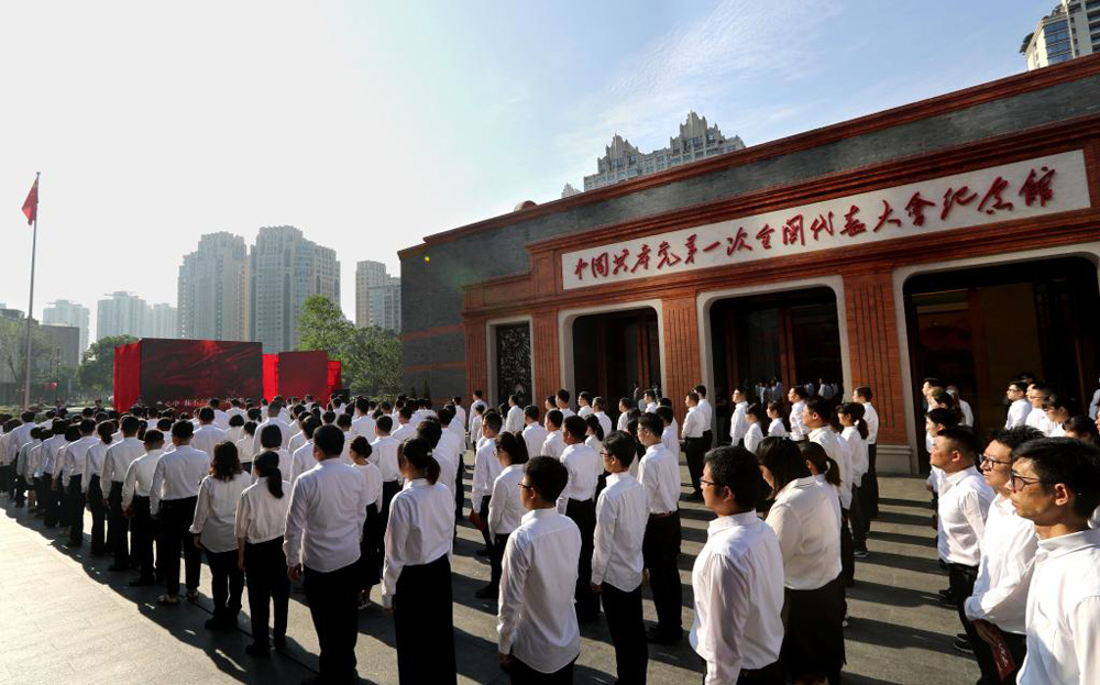 在上海,“永远跟党走——上海市新党员代表集中入党宣誓活动”在中共一大纪念馆举行。新华社记者刘颖摄