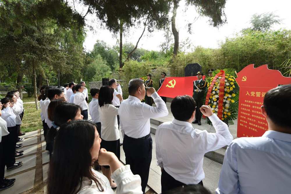 兰州大学组织新党员在兰州大学七烈士纪念碑前开展入党宣誓活动,并向七烈士纪念碑敬献花篮。新华社记者范培珅摄