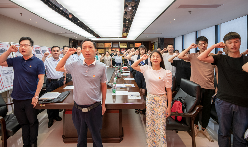 重温誓词,坚定初心信念。参加活动的40多名党员佩戴党徽,精神饱满准时到达会场。“主题党日活动”随着雄壮的“中华人民共和国国歌”奏响拉开帷幕。在行政服务中心第四党支部林碧锦书记的领誓下,全体党员面向党旗,郑重地举起右手,一字字、一句句铿锵有力的誓词,从心中迸发,回荡在活动现场。此情此景,让每位党员重温了入党初心和激动心情。为了时时提醒党员的初心与使命,支部还向每位党员送上政治生日贺卡。