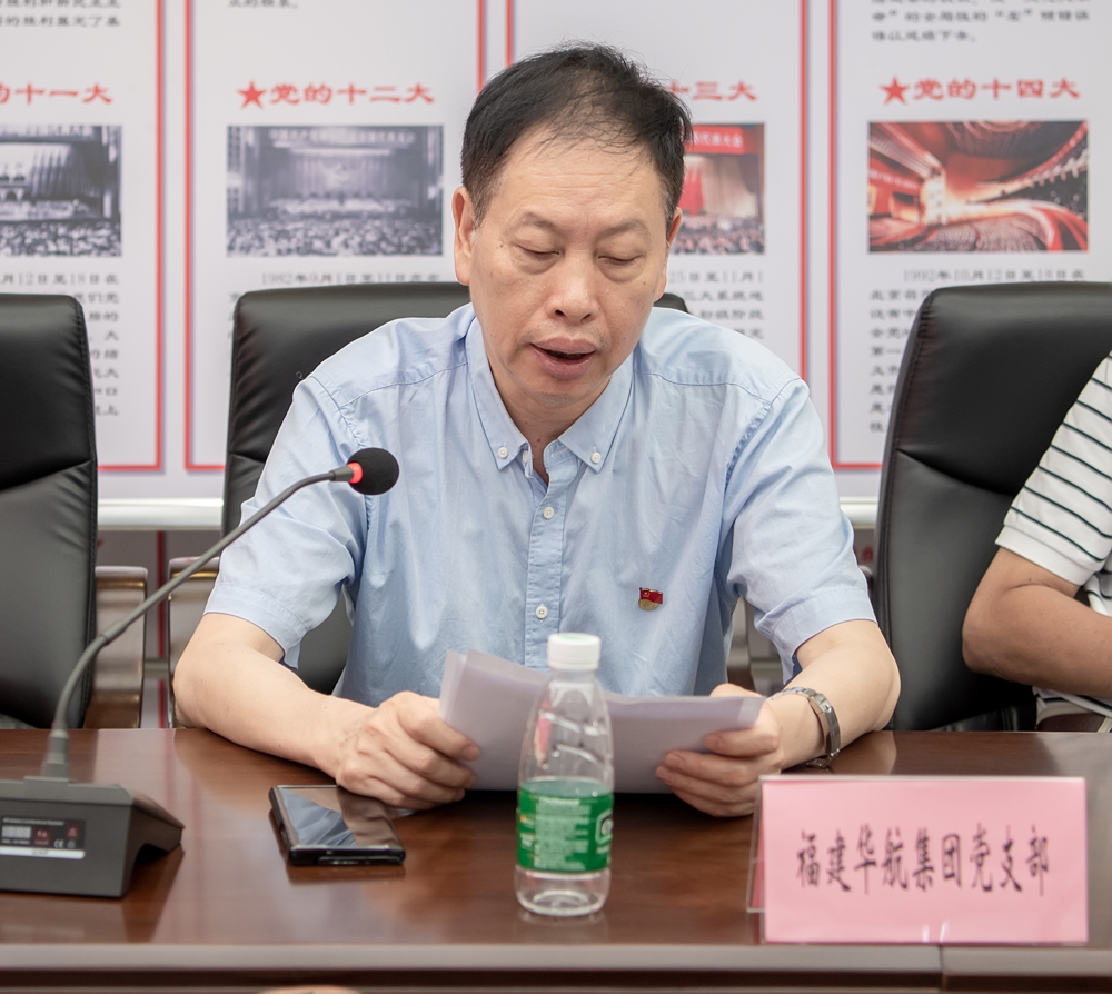 福建华航集团党支部张华官书记在发言中表示,习总书记在党史学习教育动员大会上的讲话指出,“庆祝是为了更好的传承,传承是为了更好的发展”。我们要通过隆重庆祝中国共产党建党一百周年,加强党史学习教育,深刻感悟习近平新时代中国特色社会主义思想的伟力,做到学史明理、学史增信、学史崇德、学史力行,把学习党史融入企业发展,努力实现学党史、悟思想、办实事、开新局的奋斗目标;习近平告诫全体党员,“组织上入党,是一生一次;思想上入党,要一生一世”。我们要始终牢记和践行入党誓词,传承红色基因,强化使命担当意识,不断激发奋进力量,走好新时代的长征路;要做实党建结对共建工作,努力发挥结对双方优势,汇聚高质量发展合力,稳步推动党建工作和经济发展双促进双提升。