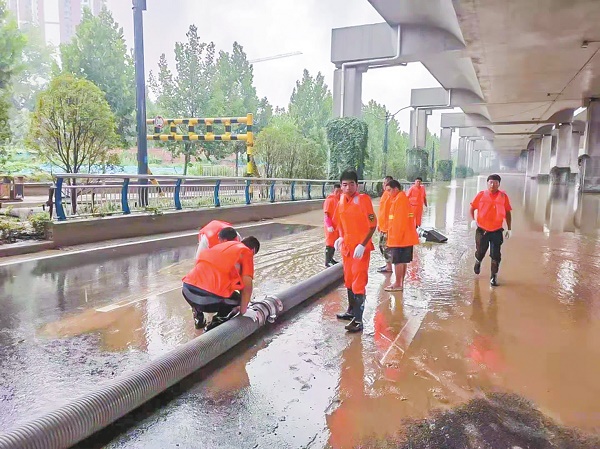 7月22日凌晨4时,北京排水集团紧急组建的、由4组大型抽排单元、16台各类设备及车辆组成的抢险突击队集结出发。73名抢险人员带着总抽升能力为7800立方米/小时的设备开赴郑州市中心城区二七区开展抢险工作。为了更好地完成这次任务,集团还成立了支援郑州抢险突击队临时党支部。全体队员表示,将用实际行动践行首都国企的职责使命,在应急排水过程中诠释“为党工作为民治水”的誓言。