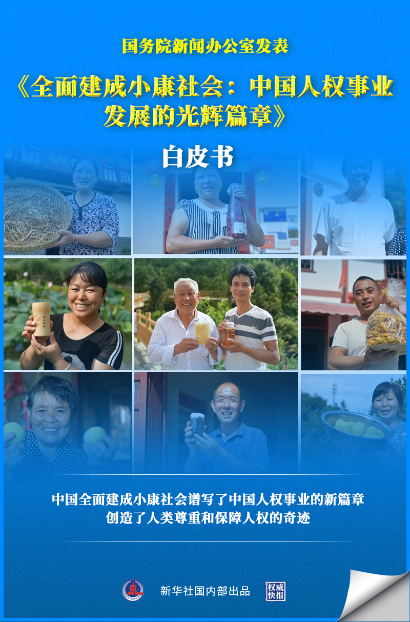 白皮书指出,全面建成小康社会开辟人权事业新境界,消除绝对贫困实现基本生活水准权,以发展促人权增进经济社会文化权利,实行良法善治维护公民权利政治权利,促进社会公平保障特定群体权益。