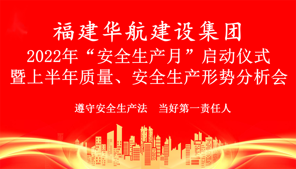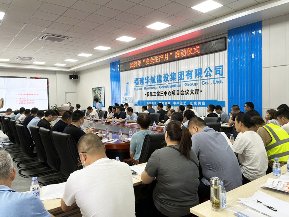 今年6月是第21个全国“安全生产月”,为践行“遵守安全生产法 当好第一责任人”活动主题,福建华航建设集团于6月6日在长乐区三馆三中心项目部大会议室举办集团公司2022年“安全生产月”启动仪式暨上半年质量、安全生产形势分析会。集团公司领导班子、总部各部门负责人、项目经理、安全员等80多人参加会议。福建华航建设集团阮伏球总经理、福州市建筑业安全协会陈恒秘书长出席会议。
