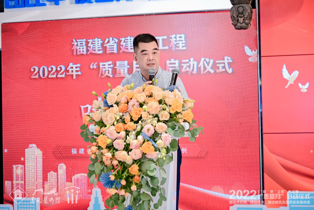 在启动仪式上,省工程建设质量安全协会会长叶健强调了本年度福建省建筑工程“质量月”活动的重要意义,介绍了各设区市协会、企业计划开展的多种形式的活动。叶健会长指出,福建是我国建筑业大省和强省,我们要以“质量月”活动为契机,增强狠抓质量管理的紧迫感和责任感,积极全面理解建设质量强国的主要内涵和重点任务,用品质履约,做强做大福建建筑品牌,以实际行动迎接党的二十大召开。