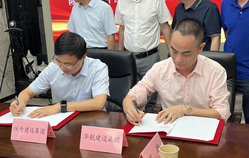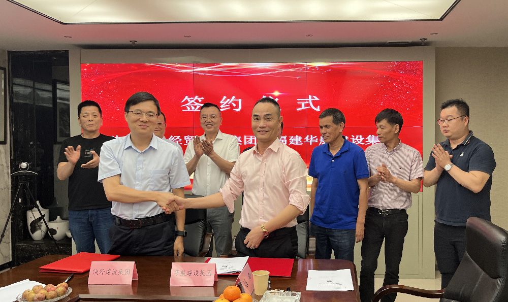 陕西省外经贸建设集团杜立波总经理与福建华航建设集团张华贵副董事长分别代表双方单位进行签约。随着双方落笔,签约仪式圆满结束。